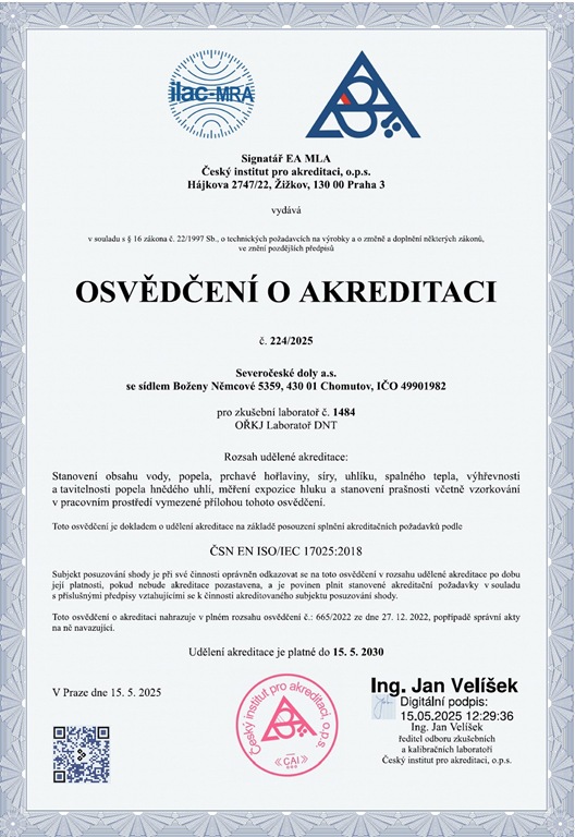 Osvědčení o akreditaci palivové laboratoře